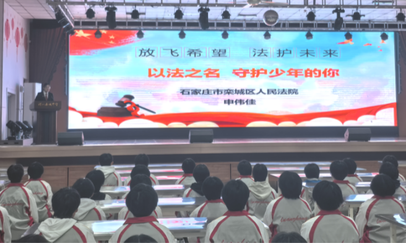 10月28日下午,河北栾城中学邀请栾城区人民法院为高一年级全体学生带来了一场主题鲜明、内容丰富的法制教育报告会。 报告会上,申伟佳法官首先向同学们介绍了人民法院的司法标志与审判场所,详细讲解了法槌的象征意义及其所代表的司法公正精神,让同学们对法院工作和法官职责有了初步认识。 随后,围绕着“预防校园欺凌,守护校园安全”主题,结合电影