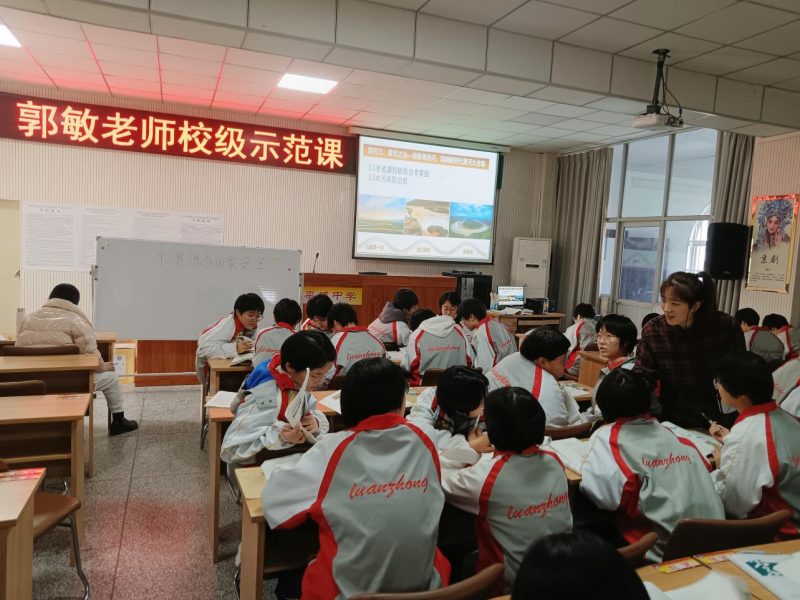 12月10日,研训处在学校五楼会议室组织开展了地理学科校级示范课活动。上课教师为高二地理组郭敏。这节课以《水资源与国家安全——问道黄河,筑梦安澜》为题,紧扣课程标准,通过“黄河之忧—溯源寻因—黄河之治—黄河之梦”的逻辑主线,结合图文材料与小组合作任务,培养学生区域认知与综合思维,增强学生水资源忧患意识,课堂互动性较强。课后进行了评课,认为本节课的亮点是,脉络清晰,逻辑条理,融入视频资源,增强课堂感染力,同时也指出了对于学生回答问题后点评不充分的不足。