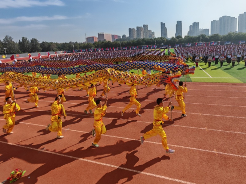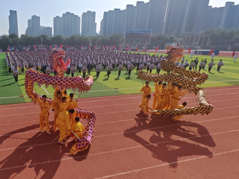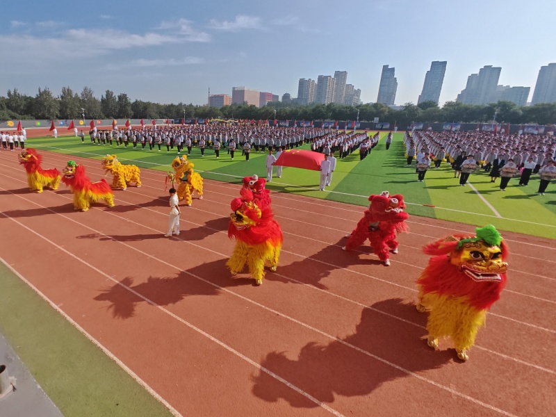 9月29日上午,栾城中学操场内旌旗招展,口号嘹亮,场面宏大,震撼人心。伴随着激昂的运动员进行曲,国旗队、鼓乐队、红旗方阵及各班级代表队依次入场,铿锵的步伐、坚定的目光,展现出栾中学子良好的精神面貌与集体荣誉感;各班富有创意的表演,诠释了“健康第一、全面发展”的育人理念;最后,栾中传统体育项目舞龙舞狮队的精彩表演和体育班马克操方队的整齐动作再次燃爆全场。