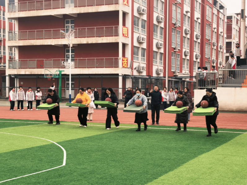 3月5日,为庆祝“三八”国际妇女节,丰富女教职工的文化生活,我校组织了一场别开生面的趣味活动。二人背球跑、单人托球跑等项目,让操场上欢笑声此起彼伏。教师们在繁忙的工作之余放松了身心,收获了满满的快乐和节日的祝福。